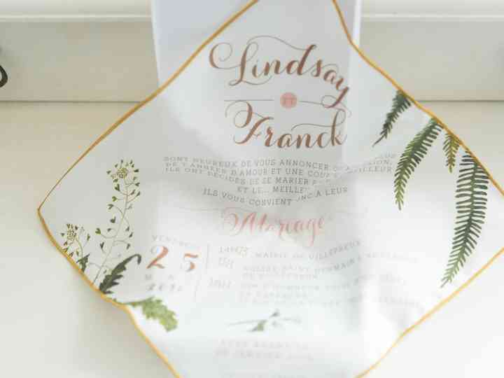 les invitations en tissu ! En effet, quelques entreprises du secteur nuptial se sont spécialisées dans l’impression sur mouchoir de vos faire-part.